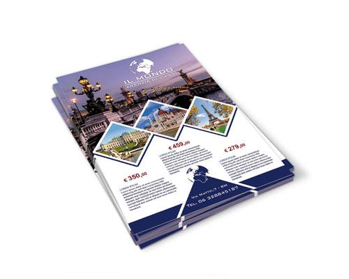 500 Volantini formato A5, fronte/retro a colori, carta 100g/mq, con grafica personalizzata inclusa nel prezzo.