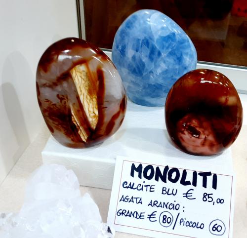Splendidi MONOLITI levigati a mano in CALCITE BLU NATURALE e AGATA ARANCIO NATURALE