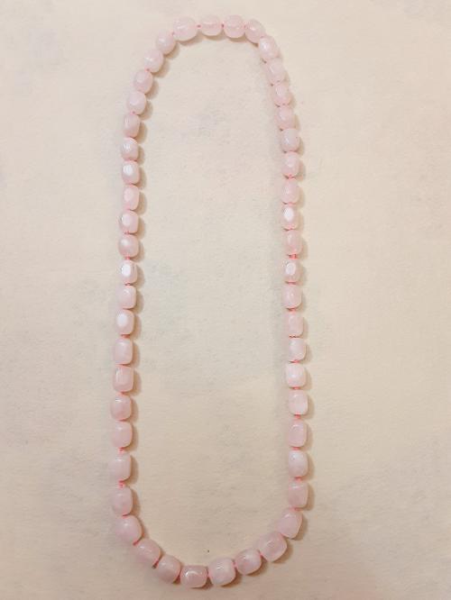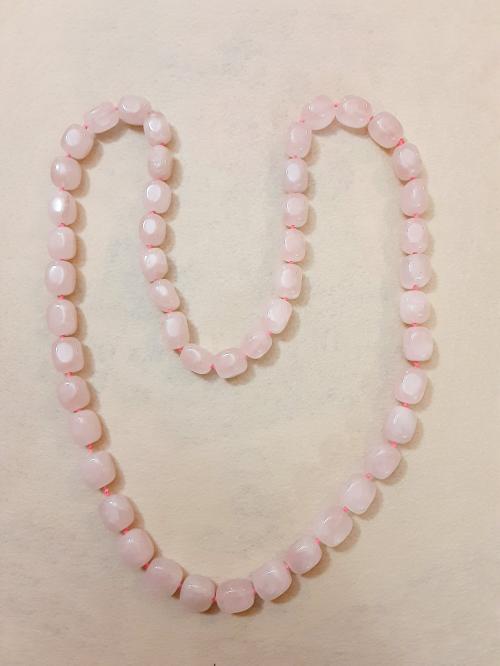 Collana con quarzo rosa naturale forma a sassolino levigato, lunghezza totale cm. 85 senza chiusura