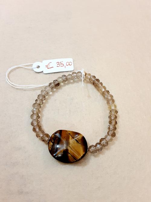 BRACCIALE elastico con OCCHIO DI TIGRE e QUARZO FUMÈ naturali
