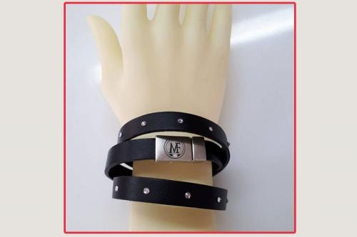bracciale vero cuoio realizzato a mano con borchie e strass