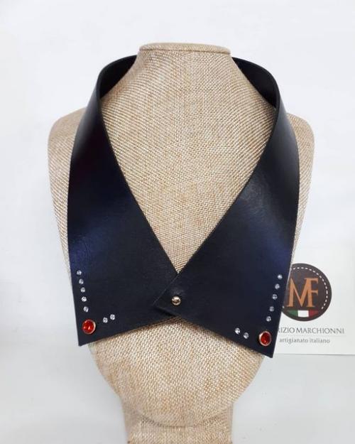 Girocollo in cuoio colore nero con strass Swarovski prodotto artigianale anche personal...