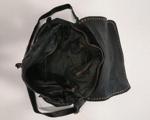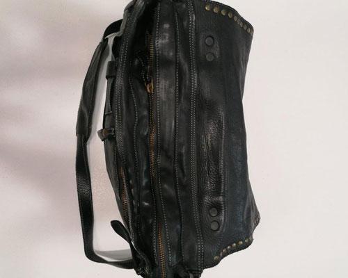 Lavorazione: la tintura in capo è una tecnica che consiste nel tingere il capo di abbigliamento già confezionato/assemblato e che conferisce alla borsa un aspetto vintage.