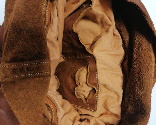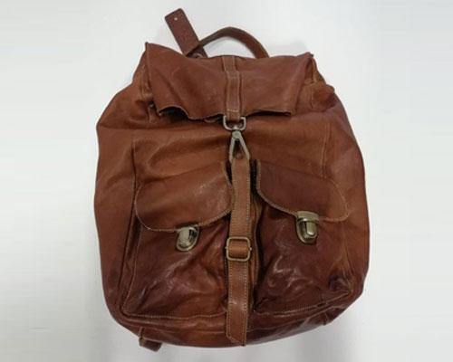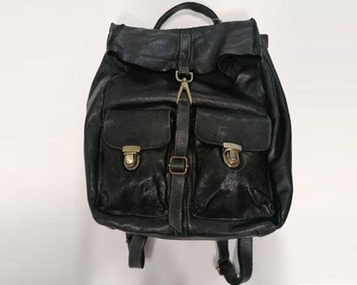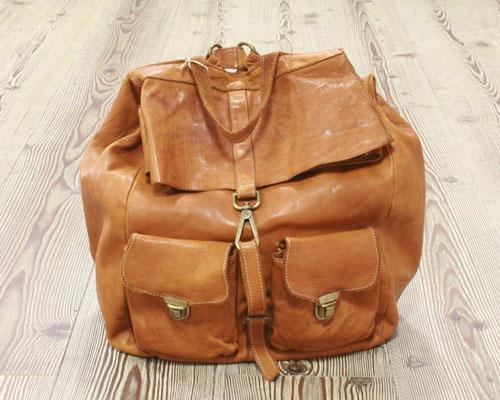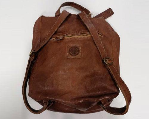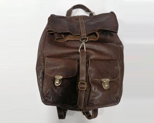 Zaino vintage tinto in capo e cerato a mano, realizzato artigianalmente in Italia. Il materiale utilizzato è pelle di vitello, pellame adatto per la produzione di borse vintage in quanto molto morbido ma resistente all'usura.