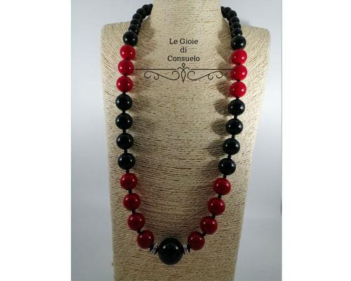 Collana realizzata in resina rossa e nera. Per l'acquisto contattarmi al numero di Whatsapp: 389.8367359.