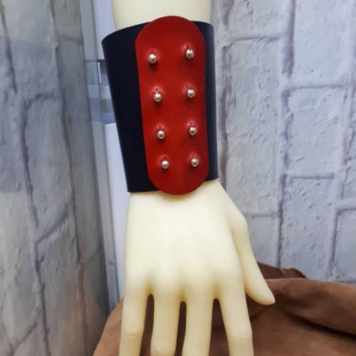 bracciale in vero cuoio con inserto in cuoio rosso chiusura con perni in ottone realizzato a mano anche personalizzato