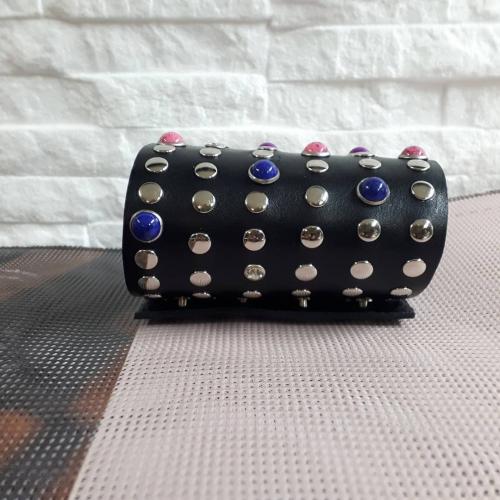 bracciale vero cuoio realizzato a mano con borchie e strass