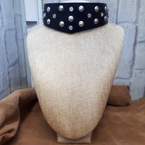 Girocollo in cuoio colore nero con strass Swarovski prodotto artigianale anche personal...