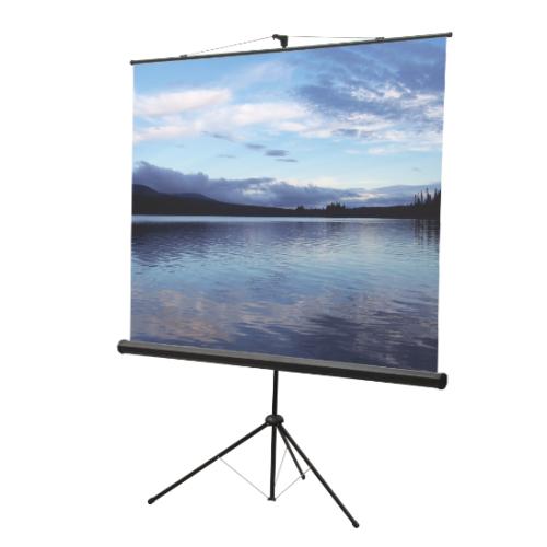 Schermo portatile 180x180, 1:1 - robusto e stabile treppiede in acciaio, tela Matte White, custodia in acciaio verniciato nero,inclinazione del telo a più posizioni sino ad un massimo di 15° con dispositivo di eliminazione effetto "Keystone".
