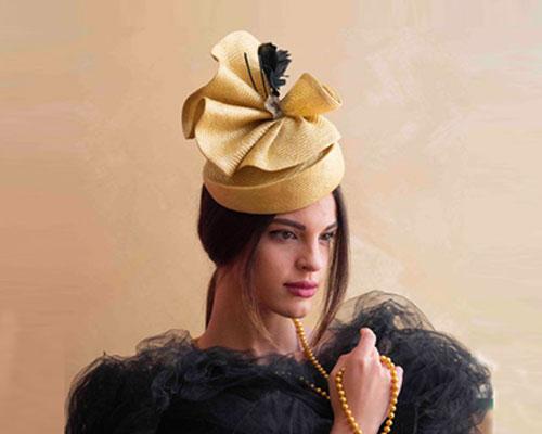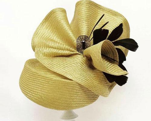 PAGLIA FINE COLOR GIALLO LIMONE GROS GRAIN PIUME BOTTONE GIOIELLO ARGENTO E NERO VELETTA ORO PETTININI IN METALLO